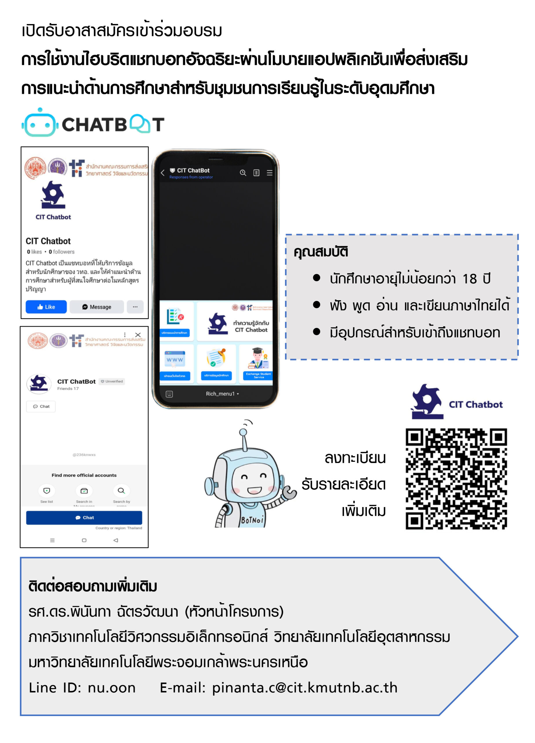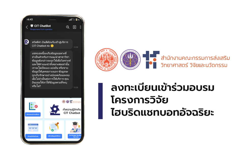 เปิดรับอาสาสมัครเข้าร่วมอบรม การใช้งานไฮบริดแชทบอทอัจฉริยะผ่านโมบายแอปพลิเคชันเพื่อส่งเสริมการแนะนำด้านการศึกษาสำหรับชุมชนการเรียนรู้ในระดับอุดมศึกษา